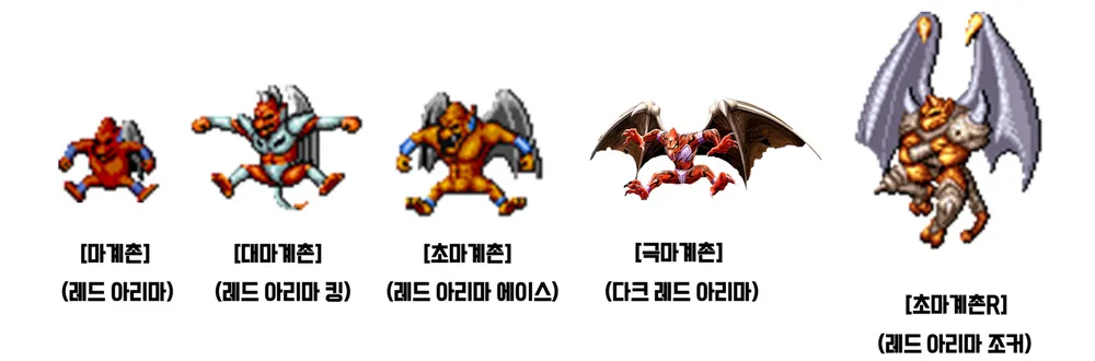 마계촌에 등장하는 가장 약한 레드 아리마에서부터 초마계촌R의 레드 아리마 조커까지 시리즈가 계속되면서 다양한 배리에이션의